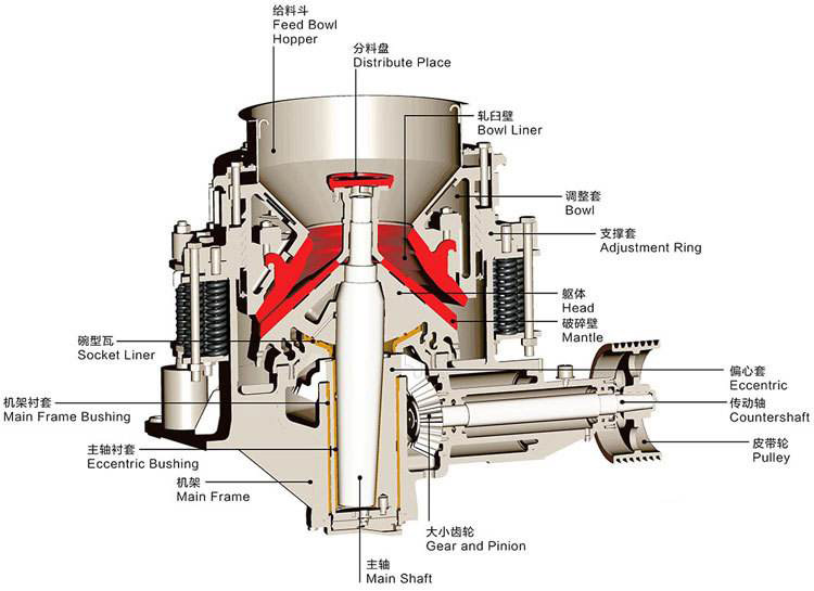 軋臼壁與破碎壁是在圓錐破中起到主要運(yùn)作的部件,軋臼壁因?yàn)槭枪潭ú粍?dòng)的所以又叫做定錐,破碎壁因來回均勻的運(yùn)動(dòng),所以叫動(dòng)錐。圓錐破在運(yùn)轉(zhuǎn)時(shí),破碎壁與軋臼壁時(shí)近、時(shí)遠(yuǎn),部件對物料進(jìn)行破碎,所以從排料口排出。軋臼壁有U型螺釘把在調(diào)整環(huán)上。在它們的工作部位復(fù)合鑲嵌硬質(zhì)合金或,使雙金屬復(fù)合耐磨件的磨損面具有優(yōu)良的耐磨性,耐磨件磨損度得到提升,壽命也隨之延長。