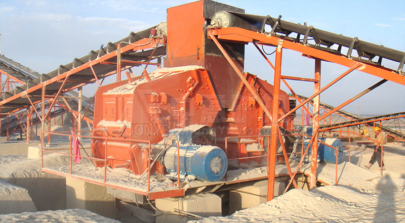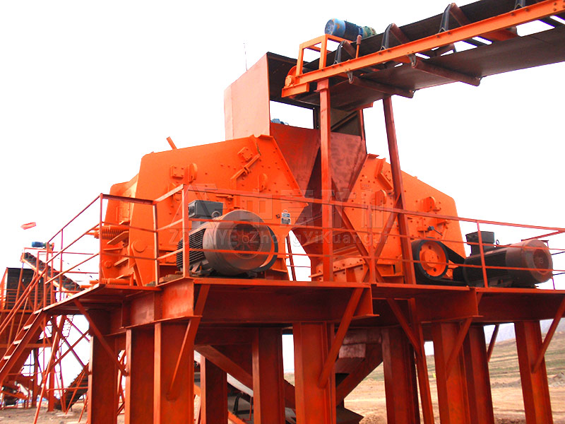 現(xiàn)場采用三級破碎的設(shè)計流程,全套設(shè)備采用鄭州中意砂石生產(chǎn)設(shè)備。即:給料機、顎式破碎機、 反擊破碎機、高效沖擊式制砂機等。