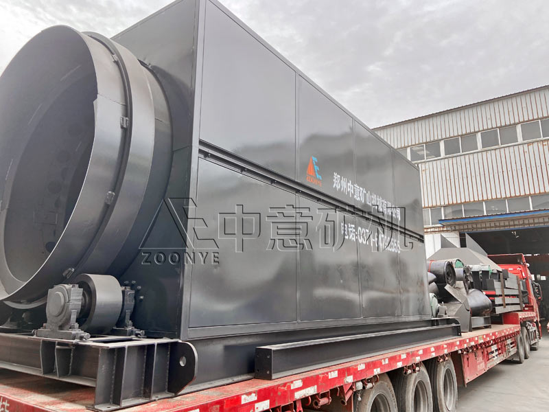 2、初級(jí)篩分:經(jīng)破碎除鐵后的骨料被傳輸至滾筒篩設(shè)備處,加裝風(fēng)機(jī)的滾筒篩可以干凈地將物料中的細(xì)小紙屑、塑料、木渣等分離出來,再生骨料能夠加工回收利用,輕質(zhì)物能夠重塑加工。
