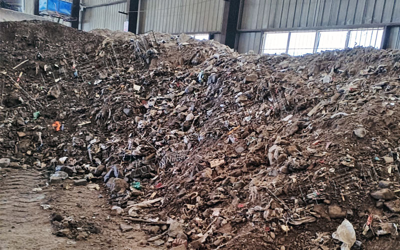 生產(chǎn)線車間內(nèi)堆放的裝修垃圾原料